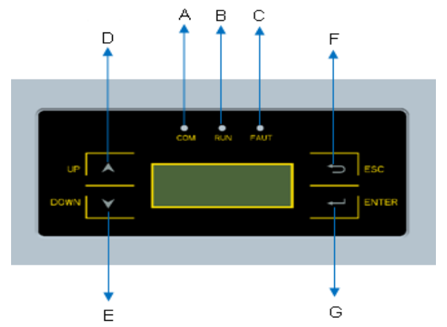 系統(tǒng)采用的逆變器擁有精美的顯示屏,顯示機(jī)器所有相關(guān)的運(yùn)行信息和設(shè)置,三個(gè)LED燈分別指示機(jī)器的運(yùn)行狀況,通信狀態(tài)和是否有錯(cuò)誤信息,用戶可以一目了然的了解機(jī)器的實(shí)時(shí)運(yùn)行狀況。