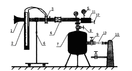 本實(shí)驗(yàn)裝置由實(shí)驗(yàn)本體(含進(jìn)氣管段、噴管試驗(yàn)段、真空罐及支架等)、真空泵、測(cè)量?jī)x表等組成,如圖1-0所示。測(cè)試系統(tǒng)主要是常規(guī)熱工測(cè)量?jī)x表(真空表、U型管壓差計(jì))及電子測(cè)試系統(tǒng)(傳感器、放大器、計(jì)算機(jī)等),可以手動(dòng)測(cè)量,也可以由計(jì)算機(jī)自動(dòng)測(cè)量,本實(shí)驗(yàn)以手動(dòng)測(cè)量進(jìn)行。