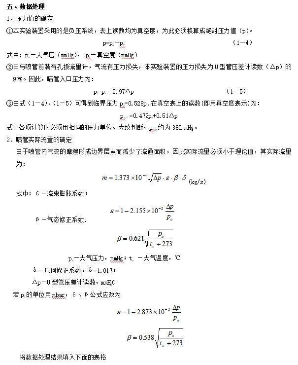 3.根據(jù)條件計(jì)算噴管最大流量的理論值,并與實(shí)驗(yàn)值比較。