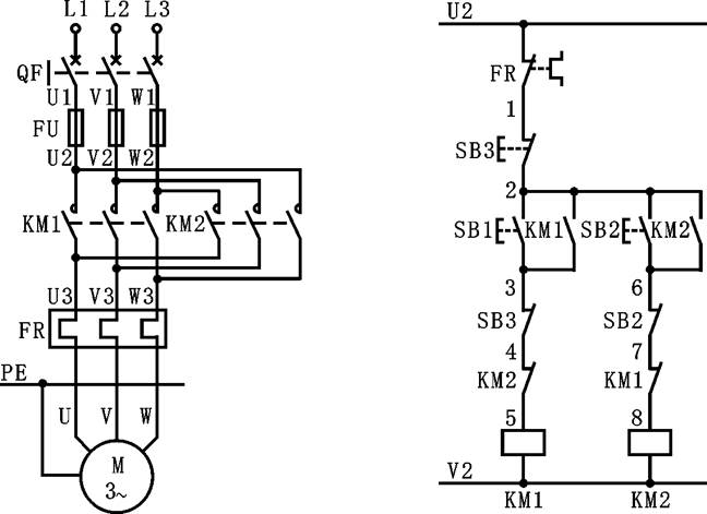 該控制線路集中了按鈕聯(lián)鎖和接觸器聯(lián)鎖的優(yōu)點,故具有操作方便和安全可靠等優(yōu)點,為電力拖動設(shè)備中所常用。