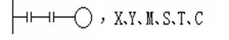 OUT指令是對輸出繼電器、輔助繼電器、狀態(tài)、定時器、計數(shù)器的線圈驅(qū)動指令。并列的OUT命令能多次連續(xù)使用。