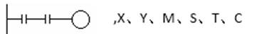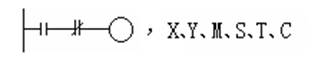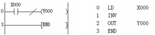 ●在能輸入AND、ANI、ANDP、ANDF指令步的相同位置處,可編寫INV指令。不能象指令表中的LD、LDI、LDP、LDF那樣與母線連接,也不能象指令表中的OR、ORI、ORP、ORF指令那樣單獨使用。