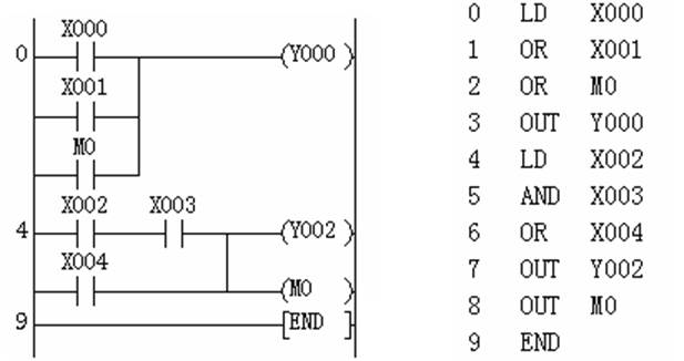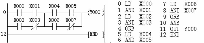 注:使用OR、ORI指令所作的并聯(lián)連接,原則上是與前述的LD、LDI連接,但在后述的ANB指令后,則可再在前面加1條LD或LDI指令連接。