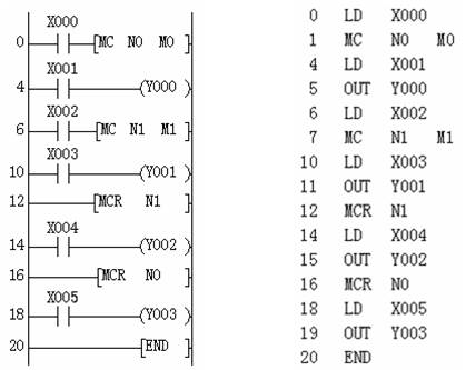 ●通過更改元件號Y,M,可多次使用主控指令(MC)。但是,如果使用同一軟元件號,將同OUT指令一樣,會出現(xiàn)雙線圈輸出。