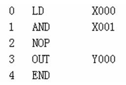 ●在將程序全部清除時,全部指令成為NOP。若在普通的指令與指令之間加入NOP指令,則可編程序控制器將無視其存在繼續(xù)工作。若在程序中加入NOP指令,則在修改或追加程序時,可以減少步號的變化,但是程序需要有余量。