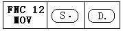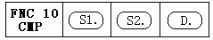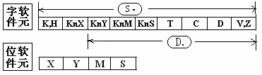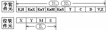 比較源S1與源S2的大小,目標(biāo)地址D輸出相應(yīng)的動(dòng)作。大小比較是按代數(shù)形式進(jìn)行的(-10<2)。所有源數(shù)據(jù)都被看成二進(jìn)制值處理。目標(biāo)地址D假如指定M0,則M1、M2被自動(dòng)占用。