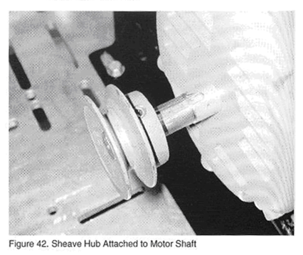 J. 將帶輪裝在電機(jī)軸上(輕輕推入),直到帶輪的端面與軸的頂端齊平,如圖42所示;