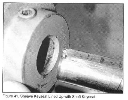 I. 拿起小帶輪將其鍵槽對(duì)準(zhǔn)電機(jī)軸上的鍵,如圖41所示;