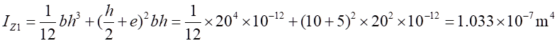 加載的力的大小為F=1000N。復(fù)合梁的單梁截面厚度b=20mm,高度h=20mm,截面作用點(diǎn)到梁支點(diǎn)的距離為c=150mm。設(shè)n=E2/E1=210/70=3,中性軸位置的偏移量為: