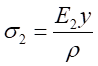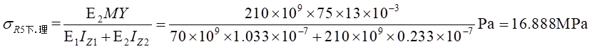 由式(1)帶入,可以得出不同材料區(qū)的彎曲正應(yīng)力分別為: