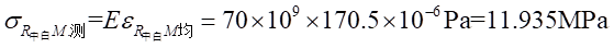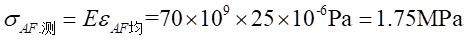 載荷F作用在試件(見圖7-1)的對稱軸線上時,A-A截面有軸力,有彎矩,由于對稱條件沒有剪力。方框試件的彈性模量為70GN/m2。軸力引起的正應(yīng)力為: