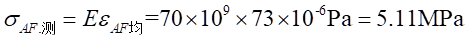 載荷F作用在試件(見圖8-1)的對(duì)稱軸線上時(shí),A-A截面有軸力,有彎矩,由于對(duì)稱條件沒有剪力。方框試件的彈性模量為70GN/m2。軸力引起的正應(yīng)力為: