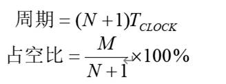時,通過改變N值,即可改變輸出的脈沖波的周期;改變M值,即可改變脈沖波的占空比。這樣輸出的脈沖波的周期和占空比分別為: