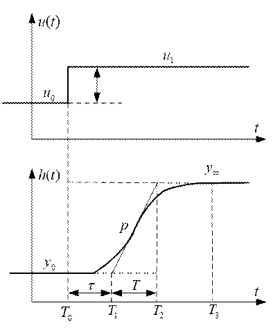 圖2.1.2 具有純滯后的一階慣性對(duì)象的S型階躍響應(yīng)曲線
