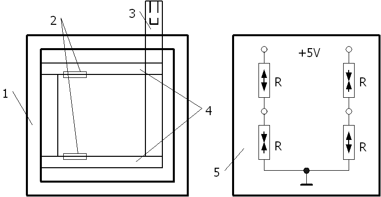 1─外殼 2─電阻應(yīng)變片 3─測桿 4─等截面懸臂梁 5─面板接線圖