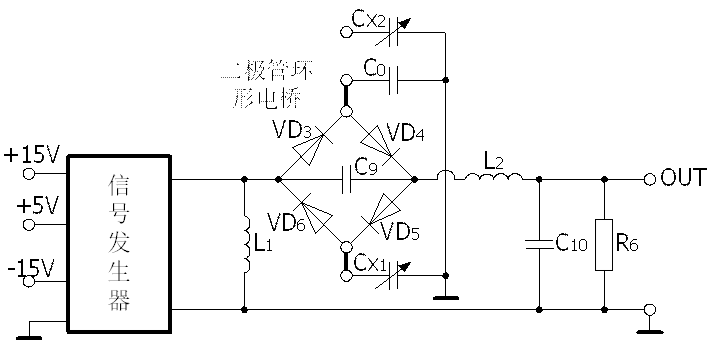 2、圖7-1中的電容轉(zhuǎn)換電路圖如圖7-2所示。圖中的信號(hào)發(fā)生器用于產(chǎn)生方波信號(hào)。電容轉(zhuǎn)換由二極管環(huán)形電橋完成,二極管環(huán)電橋工作原理如圖7-3所示。