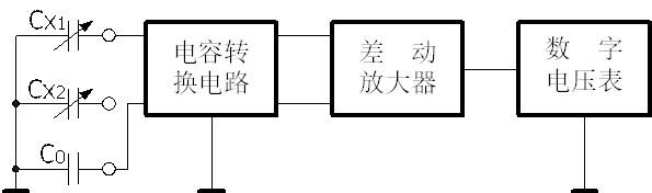 1、實(shí)驗(yàn)電路框圖如圖7-1所示。電容的變化通過電容轉(zhuǎn)換電路轉(zhuǎn)換成電壓信號(hào),經(jīng)過差動(dòng)放大器放大后,用數(shù)字電壓表顯示出來(lái)。
