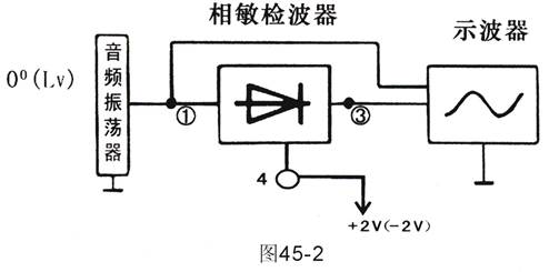 2、根據(jù)圖49-2的電路接一,將音頻振蕩器的信號0°輸出端輸出至相敏檢波器輸入端①,把直流穩(wěn)壓電源+2V輸出接至相敏檢波器的參考輸入端④把示波器兩根輸入線分別接至相敏檢波器的輸入端①和輸出端③組成一個測量線路。