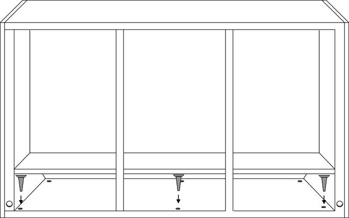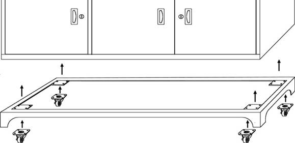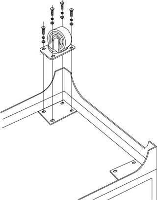 ② 將桌體翻轉(zhuǎn),圍板與萬向輪一同安裝到實(shí)驗(yàn)臺(tái)桌身,注意孔位對(duì)齊。按照右圖所示