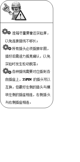 8、 模塊安放到實(shí)驗(yàn)機(jī)頭上。將①中已經(jīng)連接好的實(shí)驗(yàn)插線整理好,將長(zhǎng)出的部分合理放入機(jī)頭內(nèi)側(cè),以免模塊掛上時(shí)壓住插線。