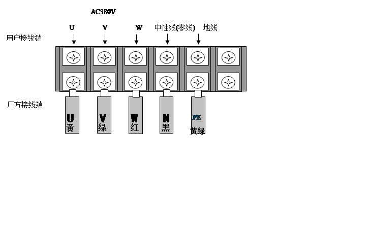 用一條5芯護(hù)套線作為電源線,每條線芯不得低于1mm2。按照?qǐng)D的順序引入電源線。電源線另一頭可以選用公司配方的三相插頭,但地線(PE)需要單獨(dú)接地。