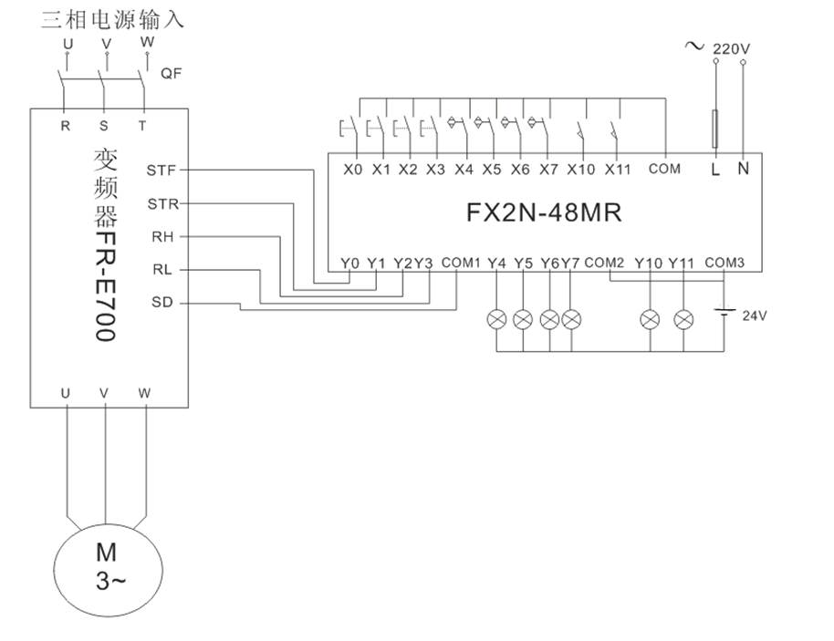 4NA | 4層轎內(nèi)指令按鈕 | X3 | RL | 低速運(yùn)行 | Y3 |