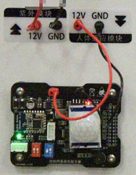 圖5-10 人體紅外模塊實(shí)物圖 圖5-11 人體紅外模塊實(shí)物接線(xiàn)圖