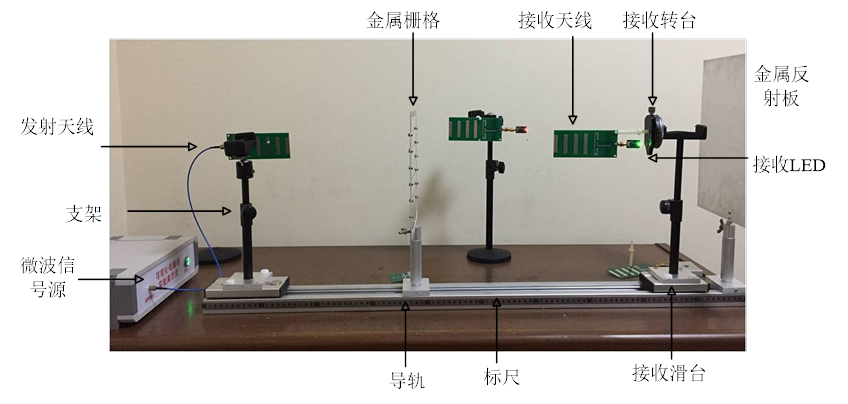 實驗系統(tǒng)通過增大射頻信號發(fā)射功率,在不需專用儀表的情況下能感知電磁場存在、定性研究天線的極化方向、天線增益、天線頻響等性能;