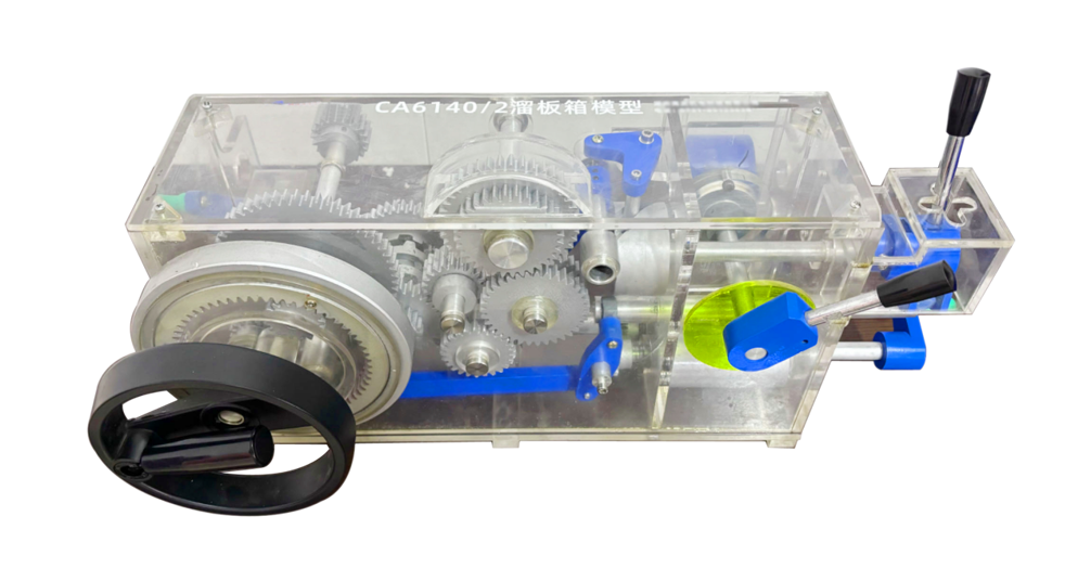 CA6140三箱模型外殼采用可透視有機(jī)玻璃制作,內(nèi)部齒輪等部件采用鋁合金制作,配合實(shí)訓(xùn)教學(xué),能使學(xué)生掌握車床車頭箱的設(shè)計(jì)過程和方法,包括參數(shù)的擬定、傳動設(shè)計(jì)、零件計(jì)算、結(jié)構(gòu)設(shè)計(jì)等,培養(yǎng)學(xué)生的結(jié)構(gòu)分析和設(shè)計(jì)的能力。