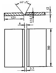 (1)焊件:低碳鋼板或l6Mn鋼板,每組兩塊,每塊長×寬×厚為300 mm×125 mm×12 mm。
