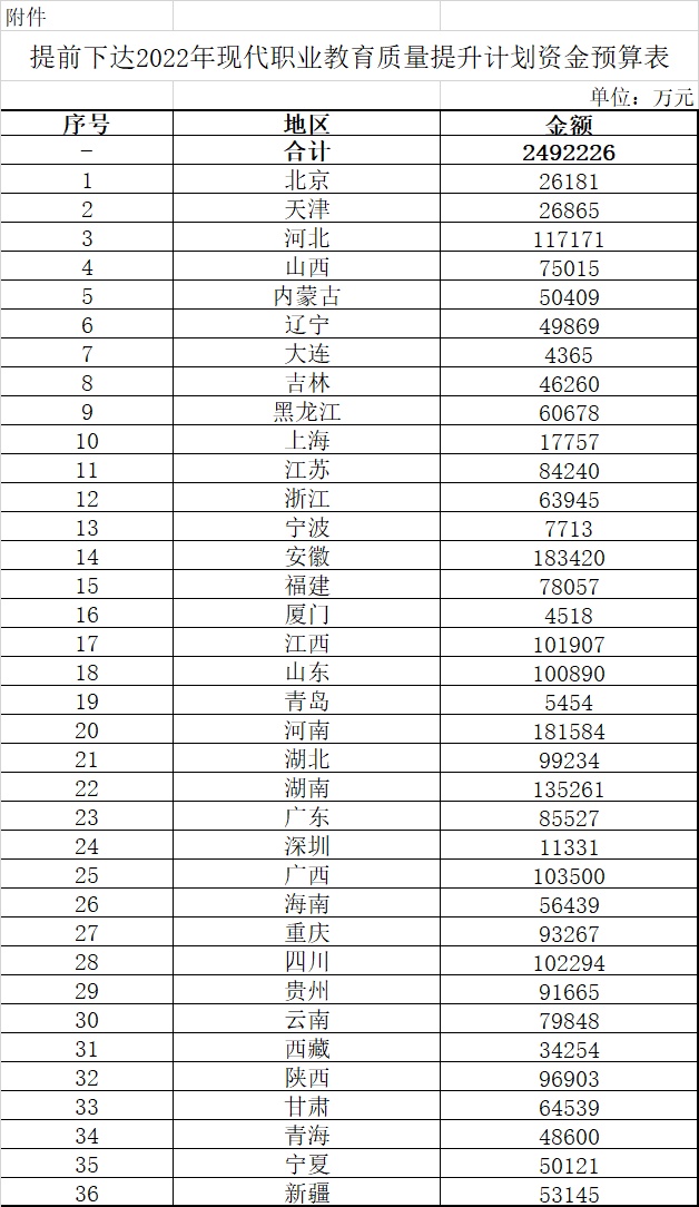 關(guān)于提前下達(dá)2022年現(xiàn)代職業(yè)教育質(zhì)量提升計(jì)劃資金預(yù)算的通知