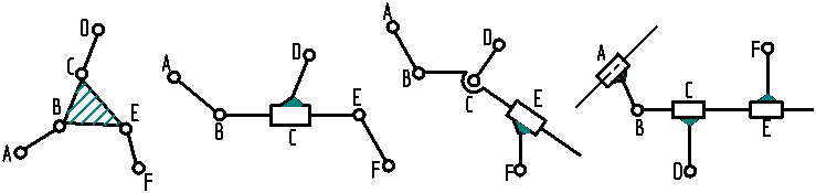 n = 4, P5 = 6的桿組稱為Ⅲ級桿組,其形式較多,圖3所示的是幾種常見的Ⅲ級桿組: