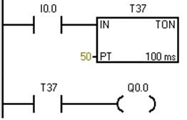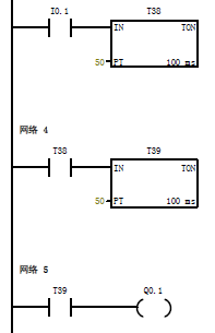 4 | = | Q0.0 | 延時時間到,輸出 |