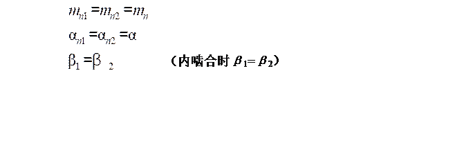 一對外嚙合斜齒圓柱齒輪的正確嚙合條件是:齒輪副的法面模數(shù)和法面壓力角分別相等,而且螺旋角大小相等,旋向相反,即