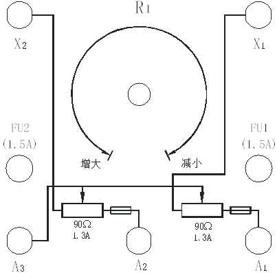 由于實驗的需要,變阻器除了做可變電阻使用外,還可采用電位器接法做分壓器用。例如他勵直流發(fā)電機(jī)勵磁電壓調(diào)節(jié)就可采用電位器接法。做分壓器時可以單只使用,也可以并聯(lián)使用。分壓器接法為: 固定電壓接在A2和X2之間,而可變電壓可以從A3和A2(或A3和A4)端引出。