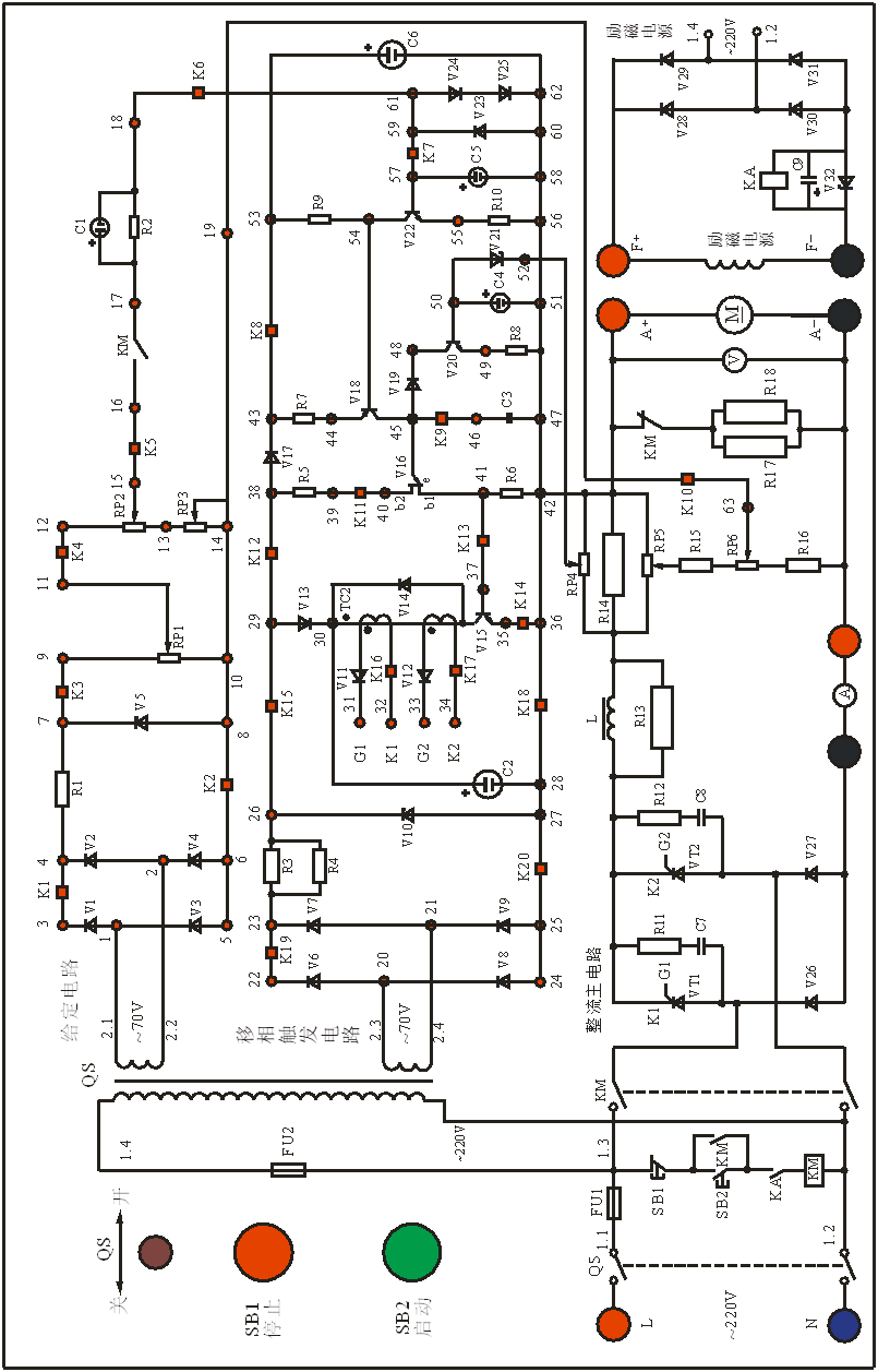 系統(tǒng)由 主電路→觸發(fā)電路→控制電路→輔助電路(包括保護(hù)、指示、報警)等。
