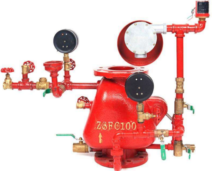 ZSFZ濕式報(bào)警閥是只允許水單方向流入噴水滅火系統(tǒng),并在規(guī)定的壓力和流量下驅(qū)動(dòng)配套部件報(bào)警的一種單向閥。它與水流指示器、壓力開(kāi)關(guān)、灑水噴頭等組成的濕式自動(dòng)噴水滅火系統(tǒng)是一種應(yīng)用極為廣泛的固定式滅火系統(tǒng)。該系統(tǒng)管網(wǎng)內(nèi)常年充滿一定壓力的清水,長(zhǎng)期處于伺應(yīng)工作狀態(tài),當(dāng)保護(hù)區(qū)域內(nèi)某處發(fā)生火災(zāi)時(shí),區(qū)域內(nèi)環(huán)境溫度升高,灑水噴頭的熱敏感元件(玻璃球)中的有機(jī)溶液發(fā)生熱膨脹而產(chǎn)生很大的內(nèi)壓力,直到玻璃球外殼發(fā)生破碎,從而開(kāi)啟噴頭噴水,并且自動(dòng)啟動(dòng)整個(gè)系統(tǒng),發(fā)出聲光報(bào)警信號(hào),以達(dá)到火災(zāi)報(bào)警及控制火災(zāi)、撲滅火災(zāi)之目的。