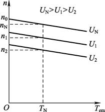 1.相關(guān)知識 1)生產(chǎn)機(jī)械的負(fù)載轉(zhuǎn)矩特性 (1)恒轉(zhuǎn)矩負(fù)載的轉(zhuǎn)矩特性 (2)恒功率負(fù)載 (3)通風(fēng)機(jī)負(fù)載 2)他勵(lì)直流電動機(jī)的機(jī)械特性 (1)機(jī)械特性的方程式 (2)固有機(jī)械特性 當(dāng)電動機(jī)的電樞工作電壓和勵(lì)磁磁通均為額定值,電樞回路不串電阻(即 ![]() ![]() ![]() ![]() 固有機(jī)械特性曲線如圖2-12所示。 ![]() 圖2-12 他勵(lì)直流電動機(jī)固有機(jī)械特性 從圖2-12中可以看出,他勵(lì)直流電動機(jī)固有機(jī)械特性是一條斜直線,跨3個(gè)象限,具有以下幾個(gè)特點(diǎn): ① 電磁轉(zhuǎn)矩Tem越大,轉(zhuǎn)速n越小,其特性是一條下斜直線。 這是由于當(dāng)Tem增大時(shí),電樞電流Ia與Tem成正比關(guān)系,Ia也增大;而電樞電動勢 ![]() ② 當(dāng) ![]() ![]() 當(dāng) ![]() ![]() ![]() ![]() ![]() ![]() ③ 斜率 ![]() ![]() ④ 當(dāng) ![]() ![]() ![]() ![]() ![]() (3)人為機(jī)械特性 (4)根據(jù)電動機(jī)的銘牌數(shù)據(jù)估算機(jī)械特性 |