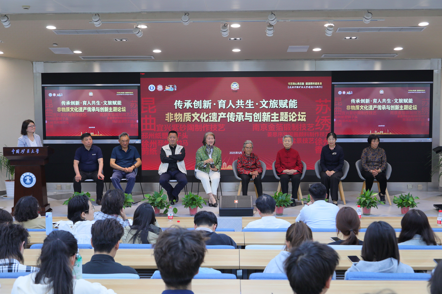 5月9日上午,在南湖校區(qū)體育館,非物質(zhì)文化遺產(chǎn)現(xiàn)場展示和體驗在徐州嗩吶和邳州跑竹馬的精彩表演中拉開帷幕。宜興紫砂陶制作技藝、蘇繡、南京金箔鍛制技藝、蘇州姜思序堂(國畫顏料)制作技藝、揚派盆景技藝、徐州香包、徐州剪紙和邳州紙塑獅子頭等國家級非遺項目悉數(shù)亮相。同學(xué)們在近距離領(lǐng)略非遺之美的同時,還在傳承人手把手的指導(dǎo)下,體驗制作過程。5月9日下午,“非物質(zhì)文化遺產(chǎn)傳承主題論壇”在博學(xué)大講堂舉辦。8位國家級非遺傳承人及學(xué)校專家學(xué)者齊聚一堂,圍繞“非遺傳承的當(dāng)代挑戰(zhàn)與創(chuàng)新路徑”等議題展開研討。