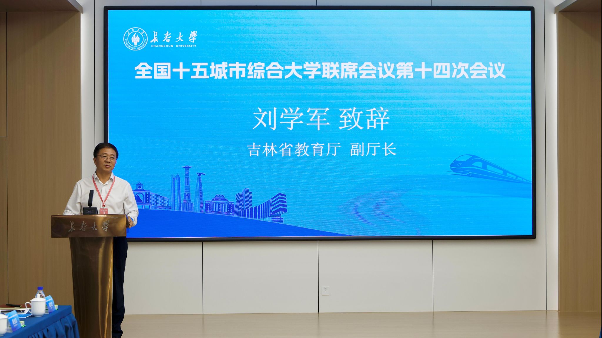 8月14日,全國(guó)十五城市綜合大學(xué)聯(lián)席會(huì)議第十四次會(huì)議在我校召開(kāi)。吉林省教育廳副廳長(zhǎng)劉學(xué)軍,學(xué)校黨委書(shū)記所永吉、校長(zhǎng)韓業(yè)、黨委副書(shū)記王劍飛、副校長(zhǎng)張洪杰以及會(huì)議成員單位代表出席會(huì)議。會(huì)議由王劍飛主持。