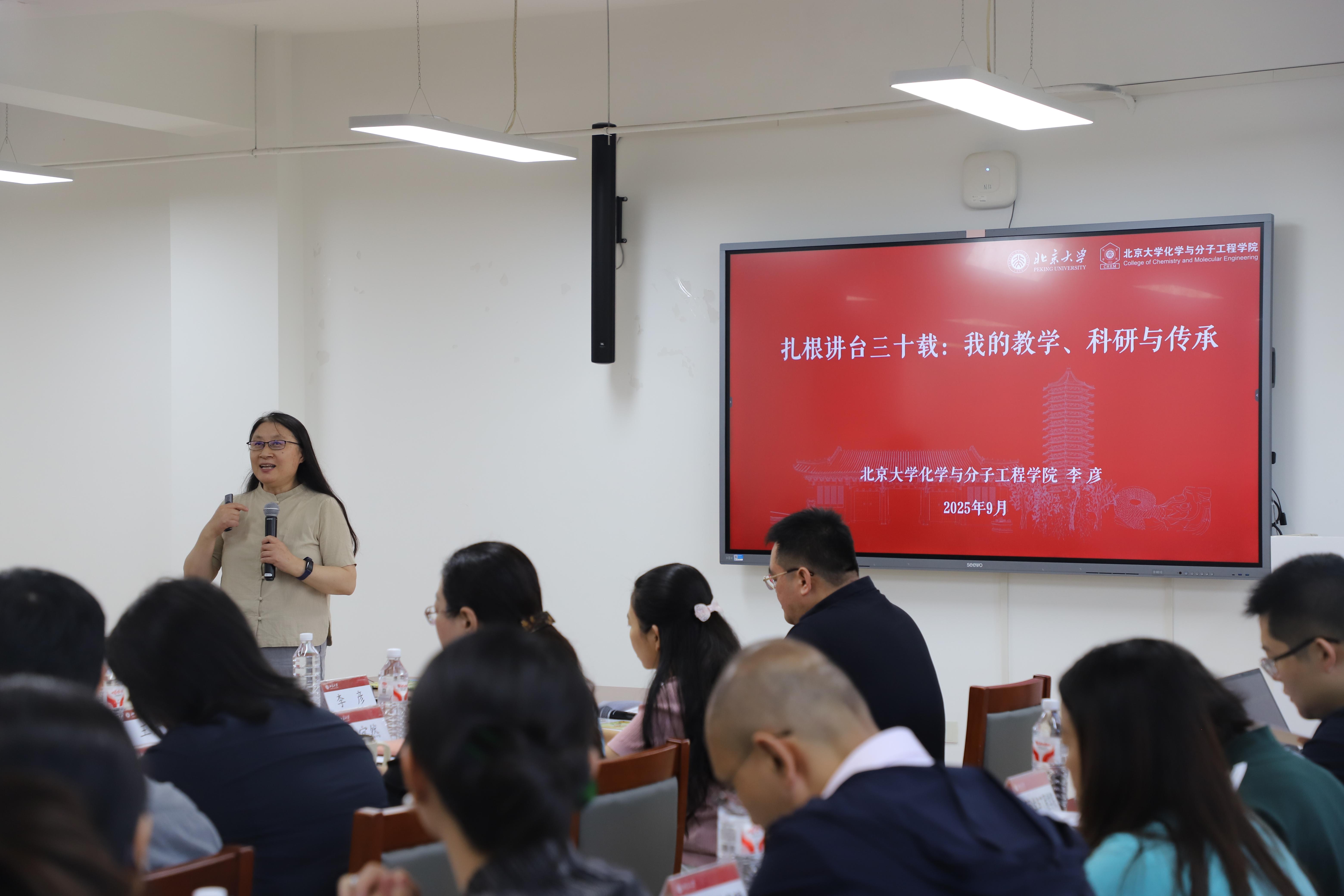 李彥以“扎根講臺(tái)30載:我的教學(xué)、科研與傳承”為題,結(jié)合30余載執(zhí)教生涯,深情回顧了自己教書(shū)育人的心路歷程。她從2001年接手國(guó)家級(jí)精品課程《普通化學(xué)》講起,生動(dòng)講述了在前輩大師傅鷹、張青蓮、徐光憲等先生的精神感召下,如何將“課比天大”作為自己的信條,20余年如一日默默堅(jiān)守在教學(xué)一線。談及教學(xué)與科研的關(guān)系時(shí),李彥以自己攻克碳納米管?chē)?guó)際性難題的經(jīng)歷為例,展示了教學(xué)相長(zhǎng)的生動(dòng)實(shí)踐。她表示,正是在《普通化學(xué)》課堂上講授的酶催化反應(yīng)原理給了她科研靈感,進(jìn)而提出基于結(jié)構(gòu)匹配的催化劑設(shè)計(jì)方案,最終成功攻克了“制備結(jié)構(gòu)一致的單壁碳納米管”這一世紀(jì)難題。而這一重大科研突破,又成為她課堂教學(xué)中最鮮活的案例,真正實(shí)現(xiàn)了教學(xué)、科研與人才培養(yǎng)的有機(jī)融合與良性互動(dòng)。